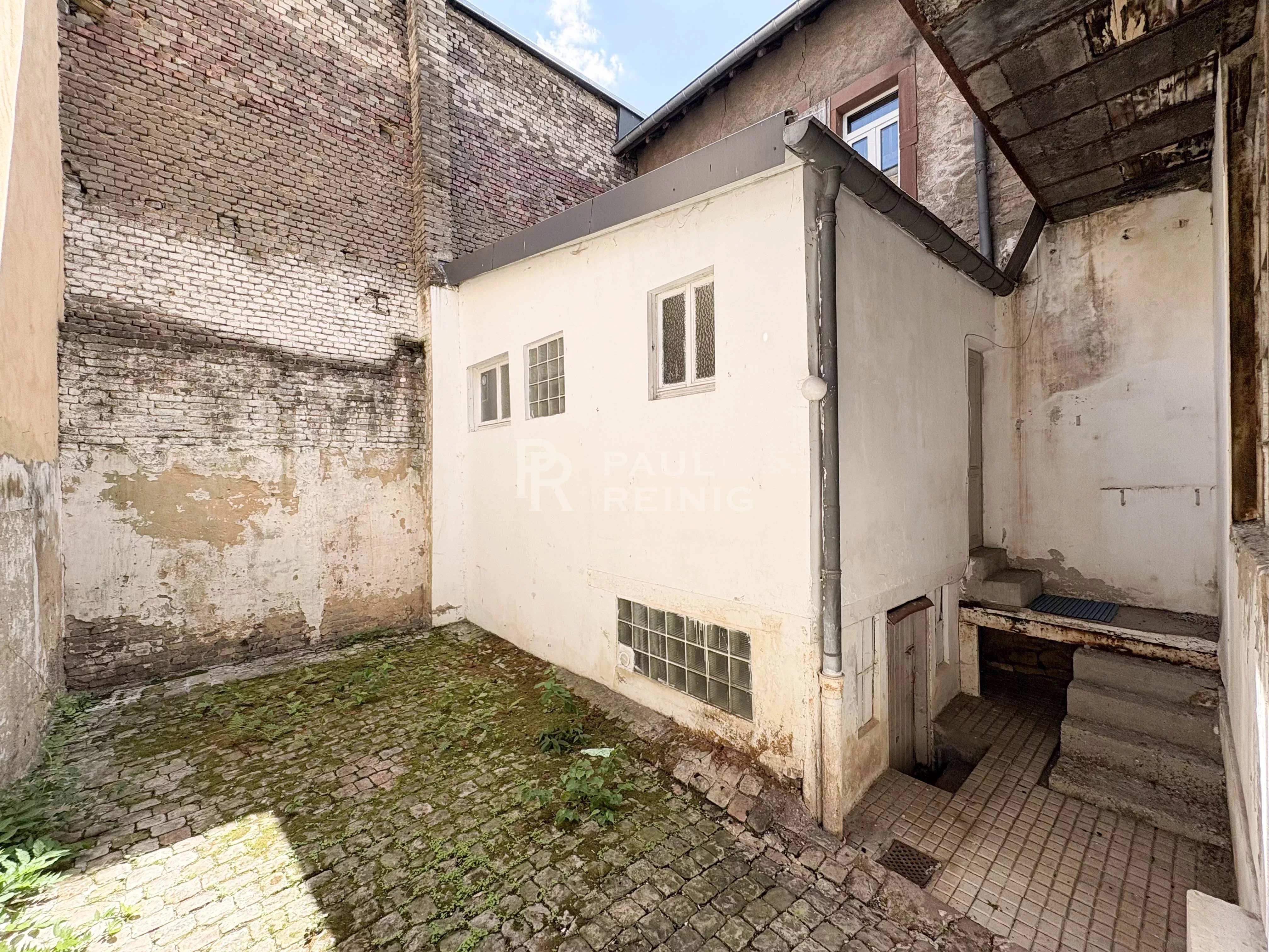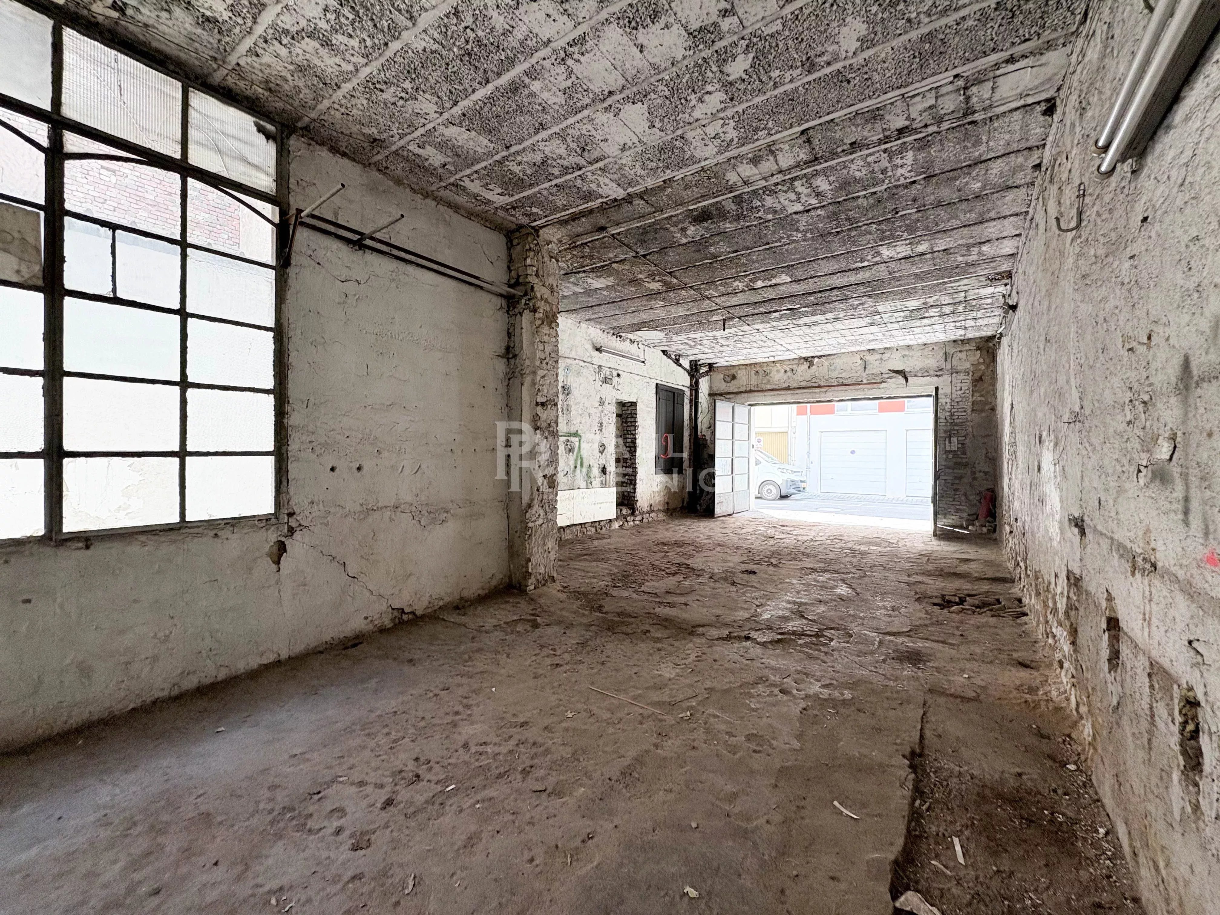 Maison mitoyenne d'une surface totale de +/-220m2 avec dépôt/annexe de +/- 150 m2 sur 2 niveaux, hauteur sous-plafond 3,50m donnant accès libre pour camion 3,5 tonnes.