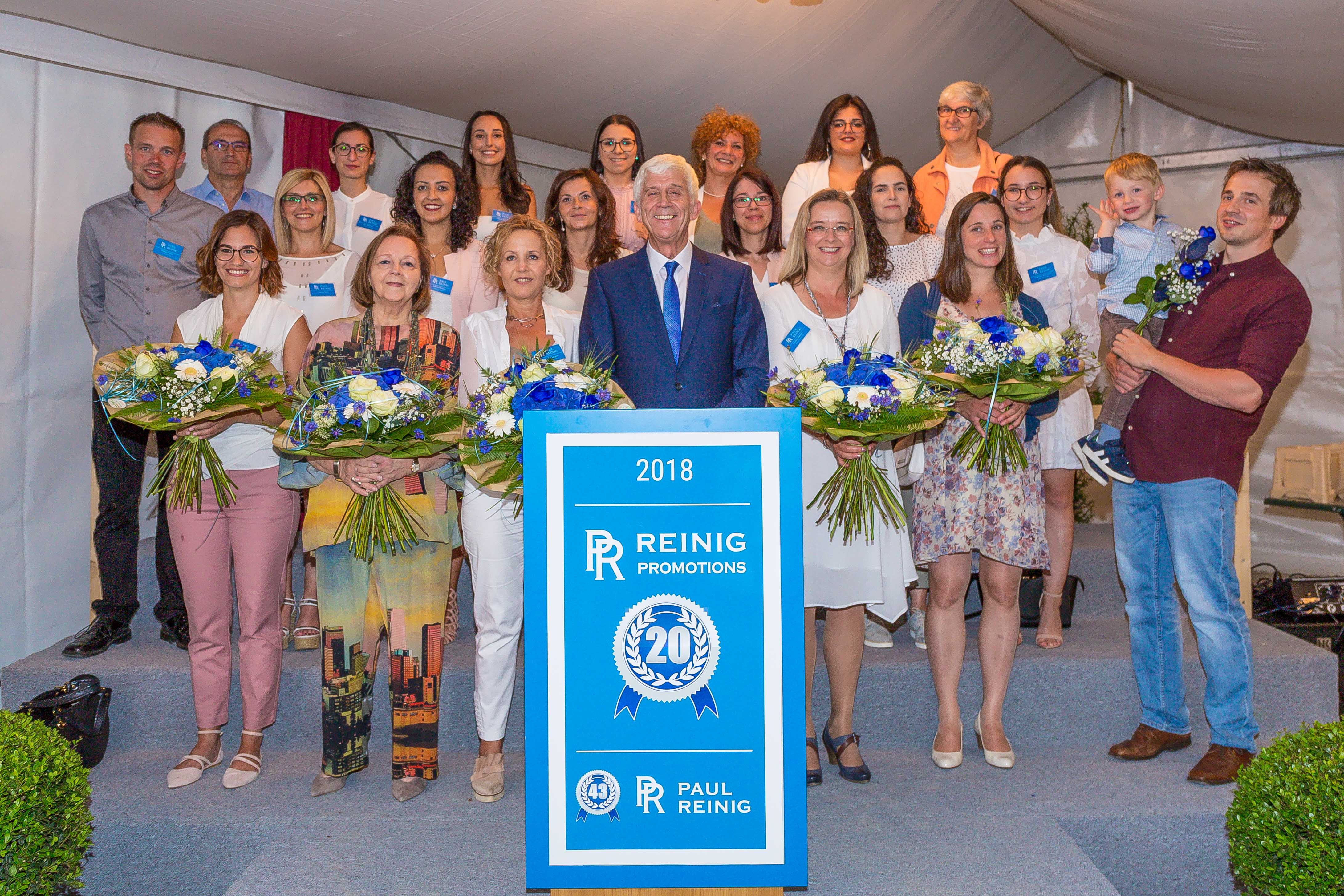 „Ech heeschen Iech häerzlech wellkommen op den 20jarige Betriibsjubiläum vun der Reinig Promotions. Ech begréissen déi Responsabel vun de Servicer vun der Gemeng Dikkrech, d’Patronen an d’Vertrieder vun de villen Handwirksbetriber déi an deene leschte 20 Jar fir eis geschafft hunn. D’Proprietäre vun der Residenz Dominique déi Residenz bei där mir hei stinn. D’Proprietäre vun der Residenz Paul déi hei niewendrun am Bau ass. D’Proprietäre vun der éischter Residenz déi mir gebaut hunn.