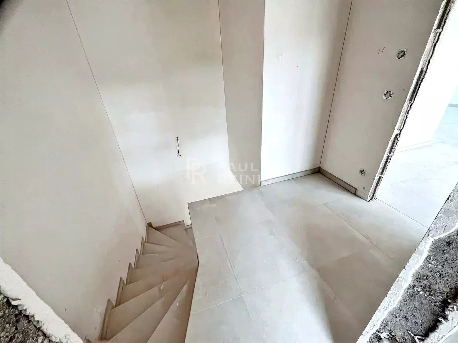 3. und letzte Etage: separate Küche, Wohn- und Esszimmer mit Terrasse von +-24 qm, Abstellraum, separates WC