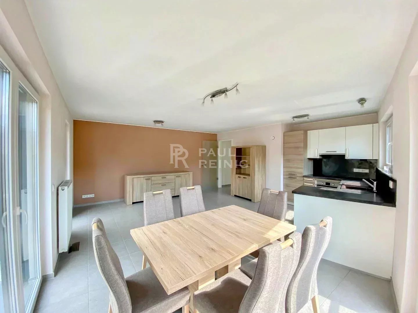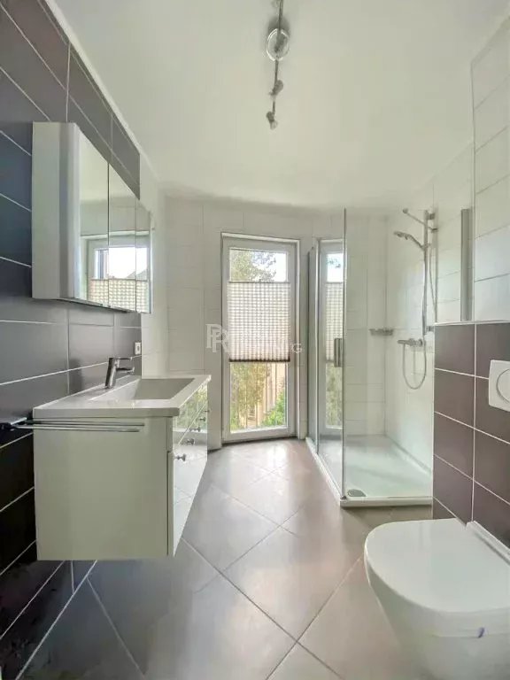 2. Stock: Eingangshalle, Wohnzimmer mit Einbauküche und Balkon, separates WC, 1 Schlafzimmer, Arbeitszimmer, Duschbad.