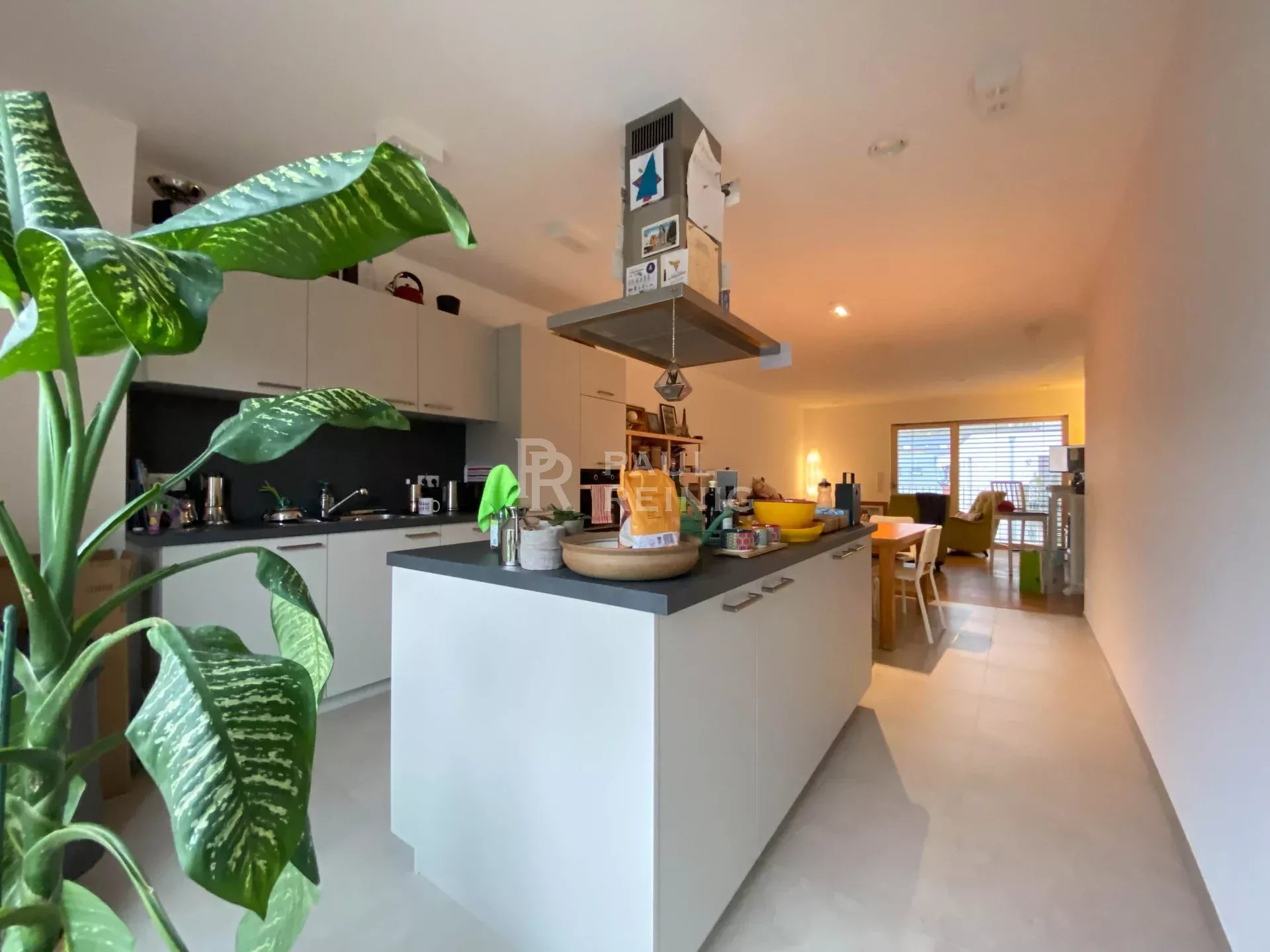 2. Stock: Eingangshalle mit Garderobe (Einbauschrank), 2 Schlafzimmer, separates WC, Badezimmer (mit Dusche und Badewanne), offene Einbauküche, Wohnzimmer mit Zugang zum Balkon (5m2), Abstellraum (mit Anschluss für Waschmaschine und Wäschetrockner) mit Fenster.