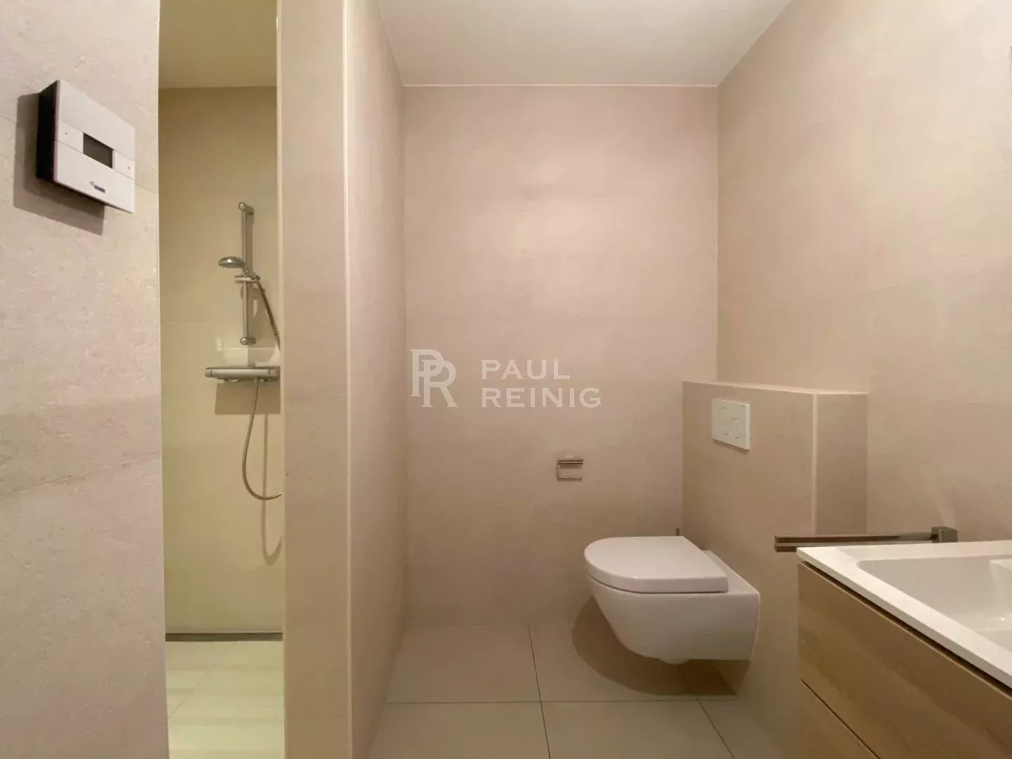 1. Stock: Eingangshalle, Wohnzimmer mit Einbauküche und Terrasse, 1 Schlafzimmer, Duschbad, separates WC;
