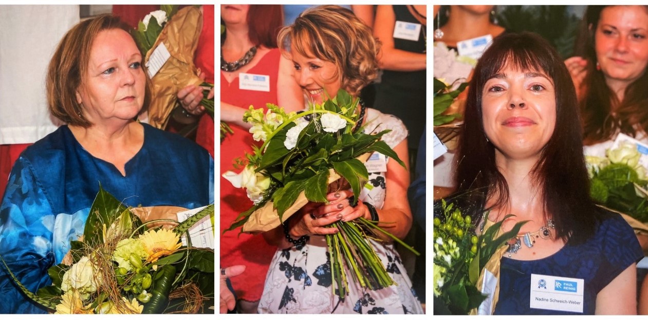 - All my employees, including those who no longer work here. The current team is marked by their long tenure. Nadine Weber, on my left, has worked here for 17 years. Marcelle Wagner, on my right, for 15 years. Natascha Befort (far left) and Edy Mendes (far right) have each been with us for 10 years.