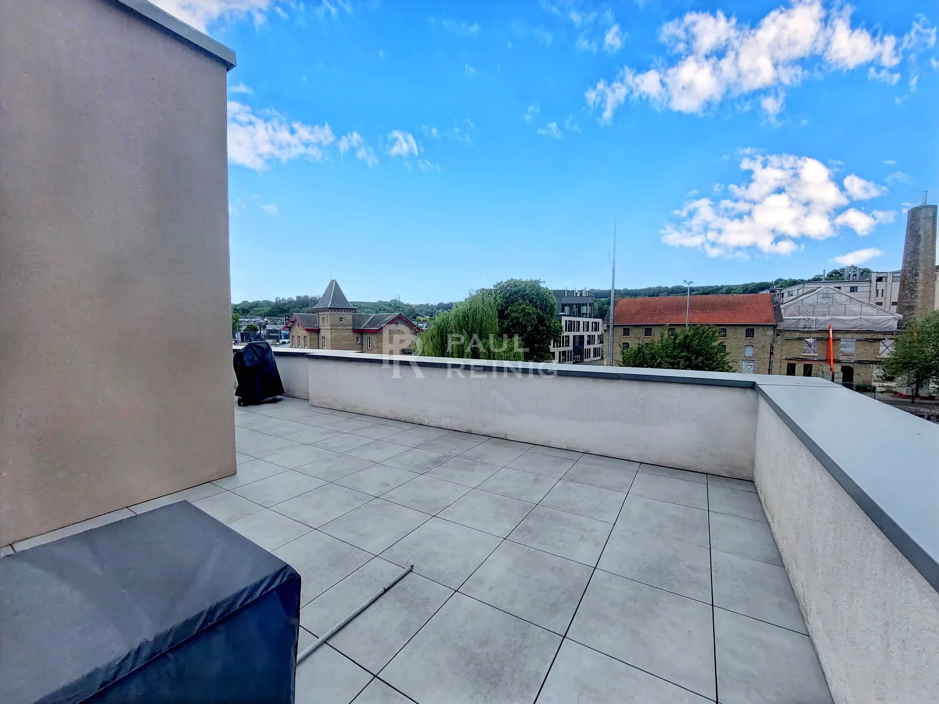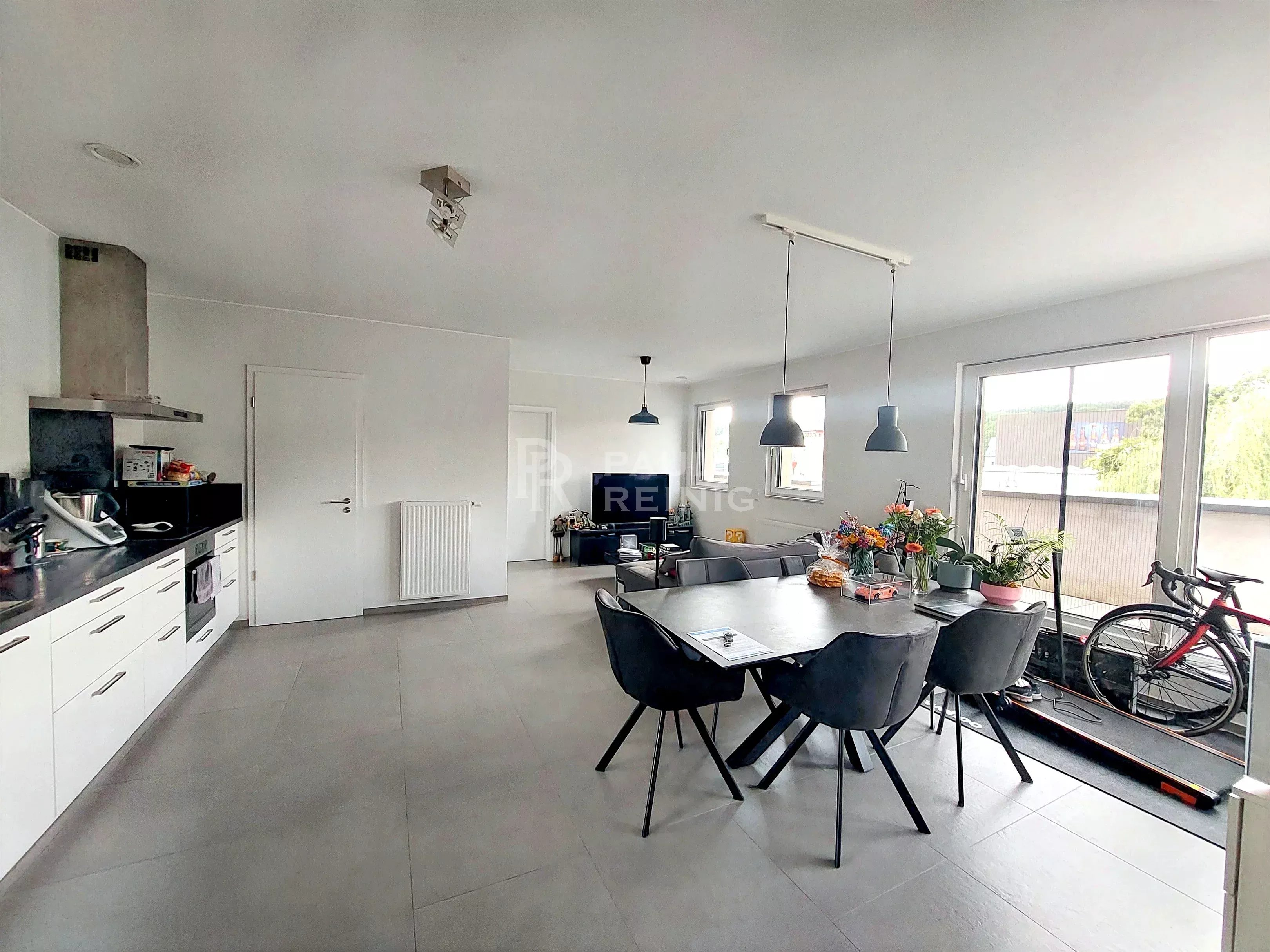 2nd floor: living room with fitted kitchen and spacious terrace (+/- 50 m2), storage room, 1 bedroom with shower room, small study, separate WC