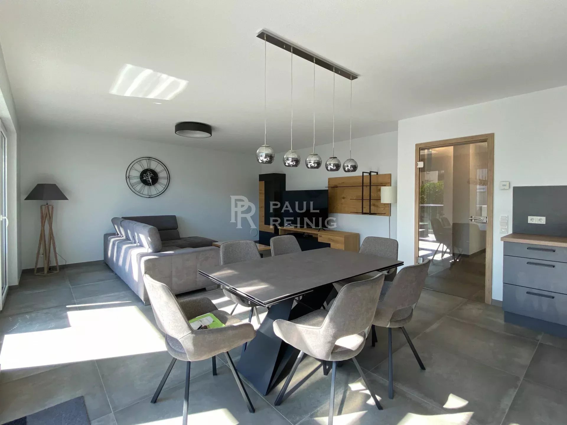 3 floor: entrance hall, separate WC, storage room with connection for washing machine and tumble dryer, fitted kitchen opening onto living room with access to balcony (13m2 and south-facing), bathroom with Italian shower, 1 bedroom;
