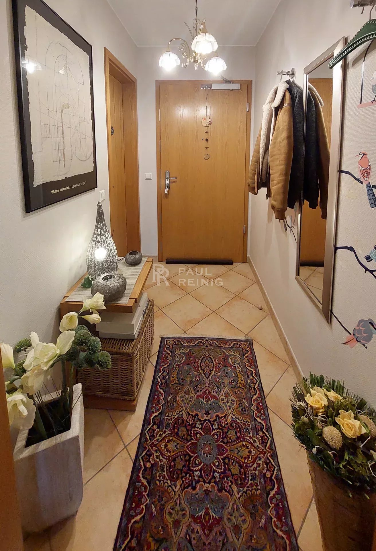 1er étage: hall d'entrée, living-salle à manger avec balcon, cuisine équipée, WC séparé, 2 chambres à coucher, salle de douche;