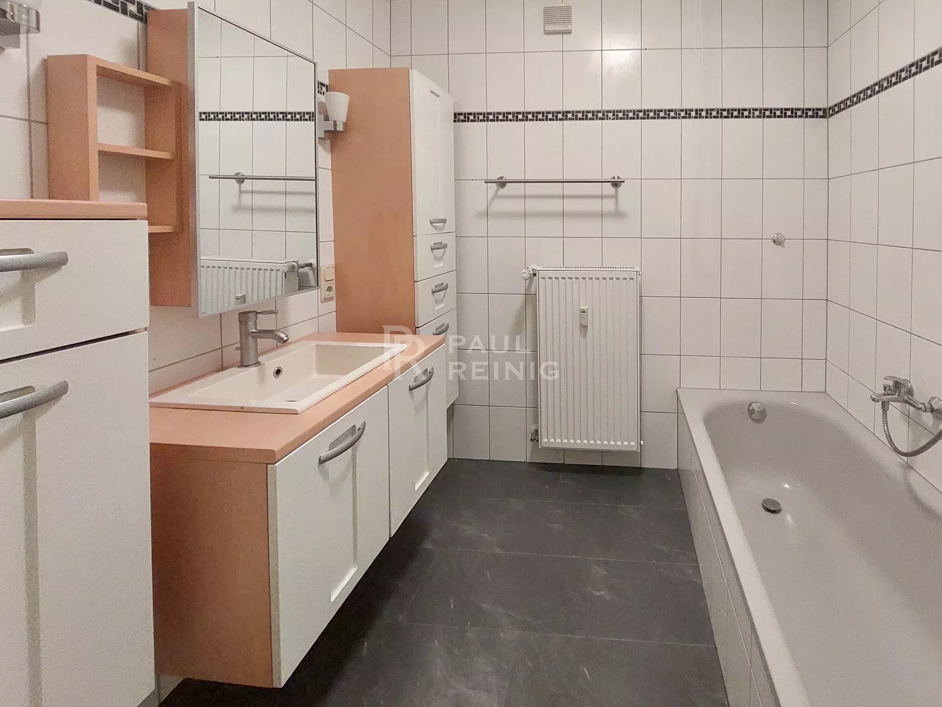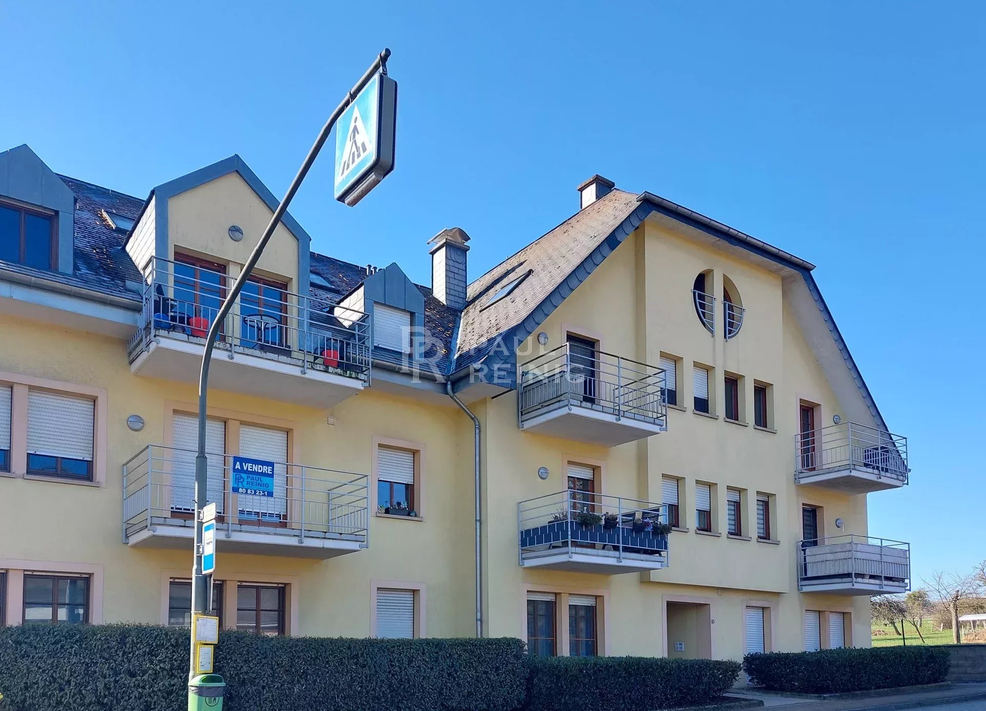 1er étage: hall d'entrée avec armoire encastrée, living-salle à manger avec balcon, cuisine équipée séparée, 2 chambres à coucher, salle de bains, WC séparé;